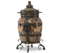 Тандыр «Перс Толпар» представлен в коллекции в двух цветах — черный и слоновая кость. Глянцевая глазурь с персидским растительным орнаментом, защищая тандыр от налета пыли, капель жира и влаги, делает его более долговечным. А благодаря крылатому коню Толпар, изображенному на корпусе тандыра, он выглядит весьма эффектно. Это настоящее украшение приусадебного участка.